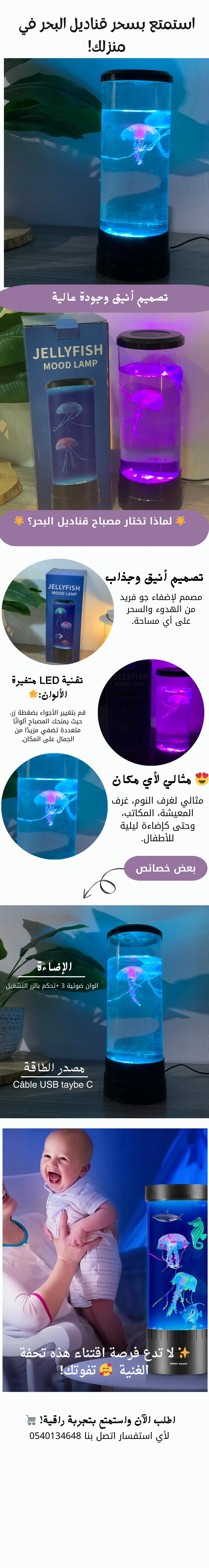 مصباح قناديل البحر الديكوري هو قطعة فنية تجمع بين الجمال الطبيعي لقناديل البحر ووظيفة الإضاءة المنزلية. يُصمم هذا النوع من المصابيح ليضفي لمسة من الأناقة والهدوء إلى أي غرفة، حيث يُحاكي شكل قناديل البحر بألوانها وأشكالها المتنوعة.