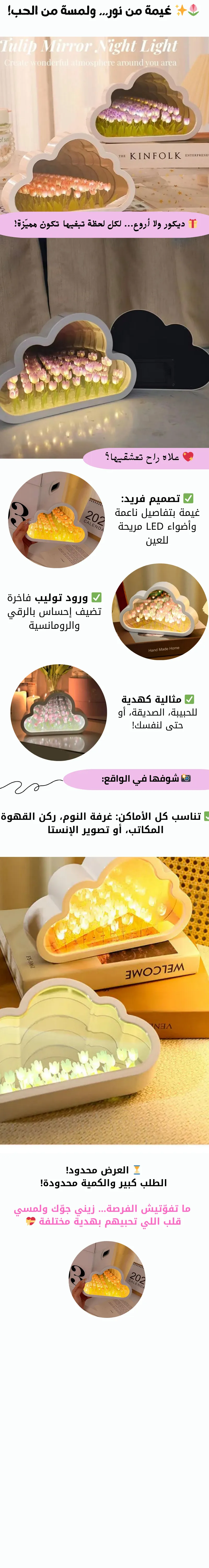 ☁️🌷 غيمة مضيئة تحتضن ورود التوليب الناعمة ديكور رومانسي، راقٍ، يضيف جو دافئ لأي ركن! مثالي للهدايا أو لتزيين غرفتك بلمسة حلم ✨