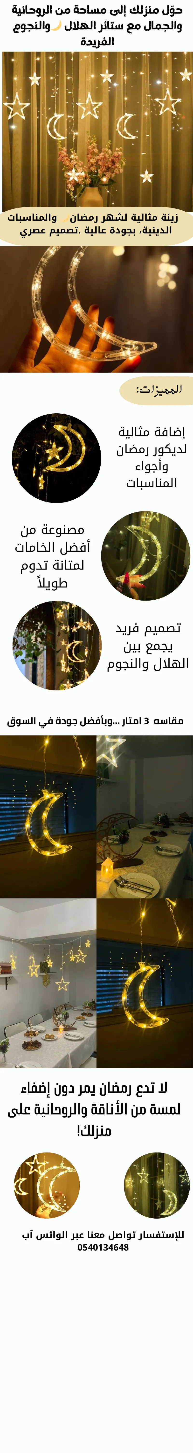 حوّل أجواء منزلك إلى مساحة مليئة بالدفء والجمال في رمضان والمناسبات الدينية. بتصميم فريد وجودة عالية، تضيف هذه الستائر لمسة روحانية وأناقة لا تُضاهى
